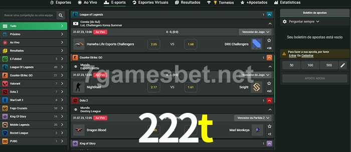 A aposta 222t oferece aos jogadores a experiência mais conveniente de apostas em eSports!